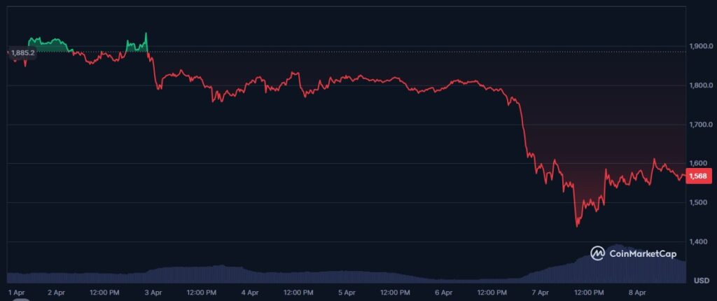 Ethereum (ETH) está atravesando actualmente un período muy difícil. De hecho, la criptomoneda ha caído casi un 20% en las últimas 48 horas, llegando a un mínimo de 1.476 $. Un nivel no visto desde marzo de 2023, hace más de un año.