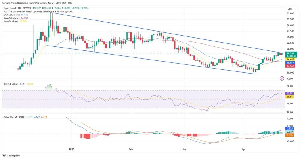 Pero dada la situación de las señales técnicas actuales, todo apunta a que el token HYPE está realmente en camino hacia un importante repunte, con la señal alcista alrededor de los 20 dólares como punto clave a seguir en las próximas semanas.