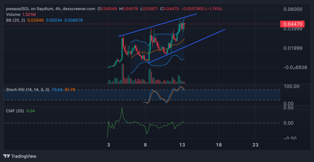 En el momento de escribir esto, la memecoin PWEASE se está negociando a 0,447 dólares, con una capitalización de mercado de 44 millones de dólares. El token ha experimentado un aumento del 220% en los últimos tres días.