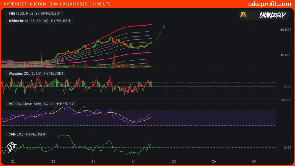 A corto plazo, el FBB en 30 minutos indica un posible objetivo alcista en 42 dólares en los próximos días. HYPE sigue siendo alcista y parece estar en camino de convertirse en una de las joyas de 2025.