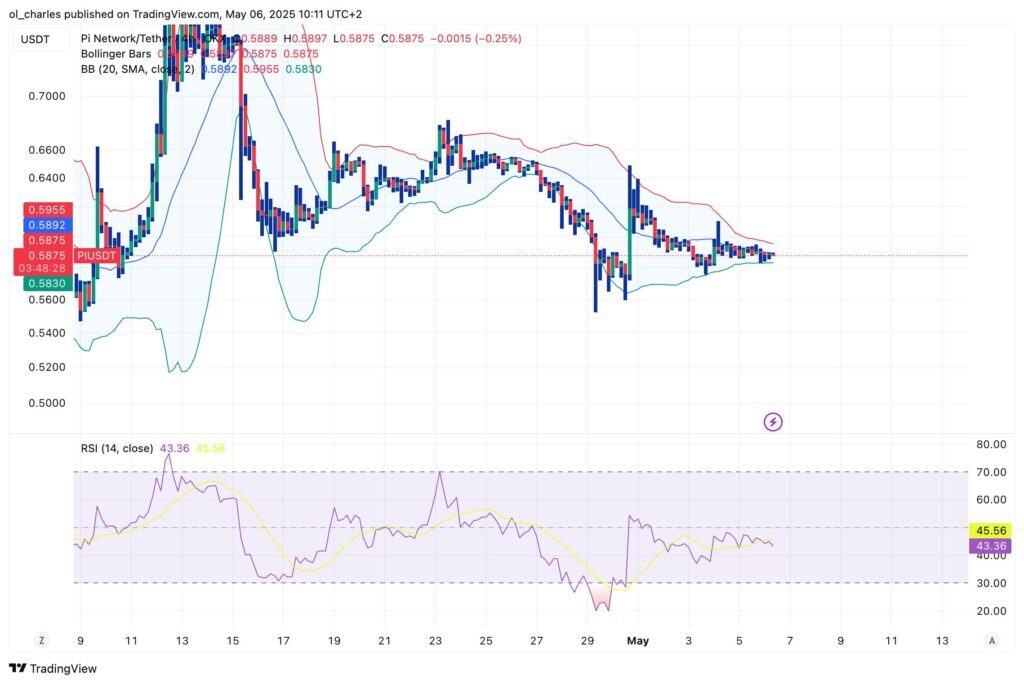A pesar de este avance regulatorio crucial, el precio de Pi apenas ha variado recientemente. En la actualidad, el token se negocia alrededor de 0,59 dólares, con un RSI de 44,58, mostrando debilidad en la dinámica de compra.