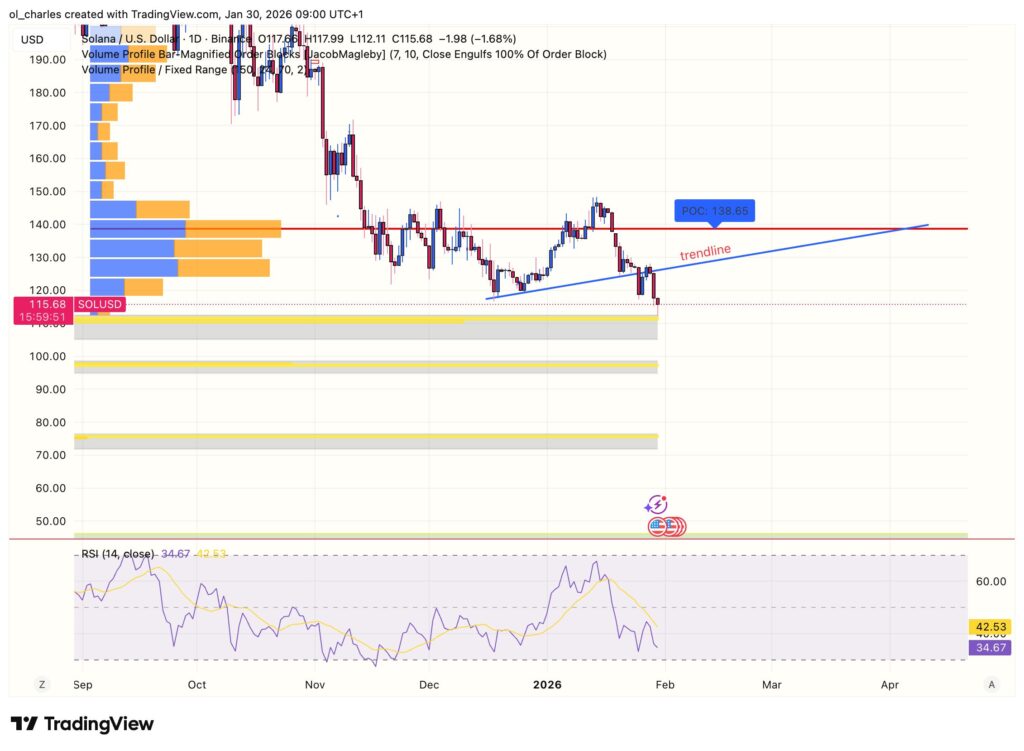 Actualmente, SOL ha rebotado en una zona de demanda y el order block en 1 día. Si se mantiene por encima de los 105 $, SOL podrá intentar recuperar su trendline en 126 $. Si SOL transforma esta resistencia en soporte, entonces los 135 $ serán la siguiente etapa más probable.