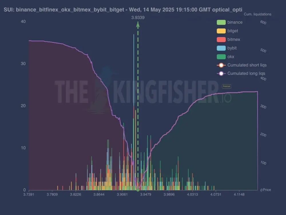 El análisis de las liquidaciones realizado por el trader The Kingfisher destaca una fuerte concentración de posiciones largas con apalancamiento alrededor de 3,93$ para el SUI. La caída por debajo de este nivel desencadenó una ola de liquidaciones, exacerbando la caída de los precios.