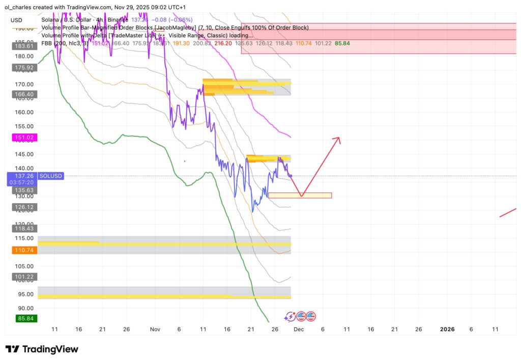 Antes de ello, SOL deberá franquear su Order Block en 4 horas a 145 dólares. Antes de eso, SOL podría replegarse hacia su Order Block entre 128 y 130 dólares antes de intentar romperlo al alza y apuntar a esos 152$.