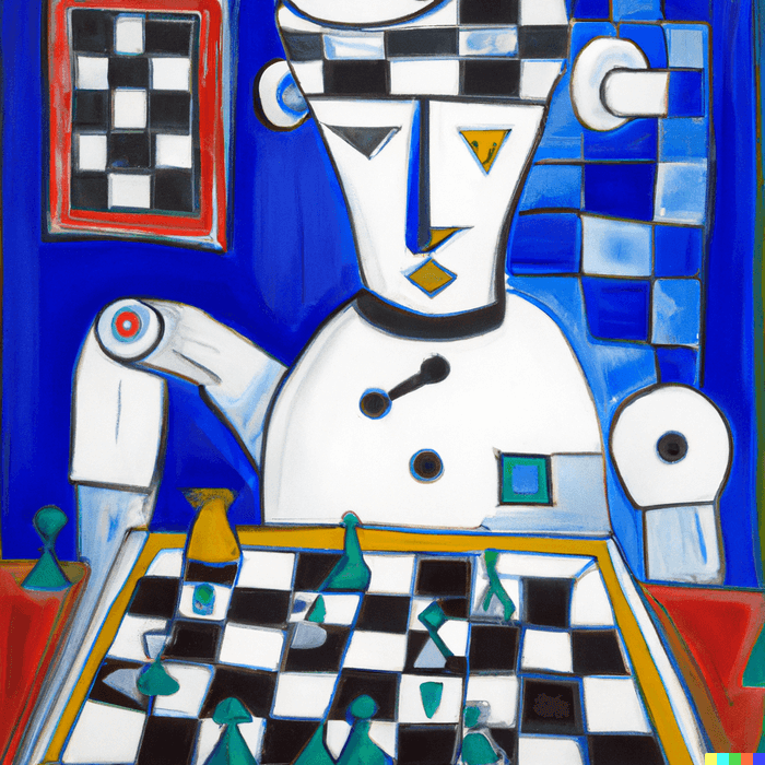 Exemple : Une peinture à l’huile peinte par Matisse d’un robot humain qui joue aux échecs