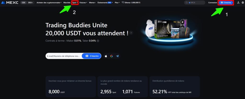 Créer un compte sur MEXC Rendez-vous sur mexc.com, inscrivez-vous avec un e-mail ou un numéro de téléphone.