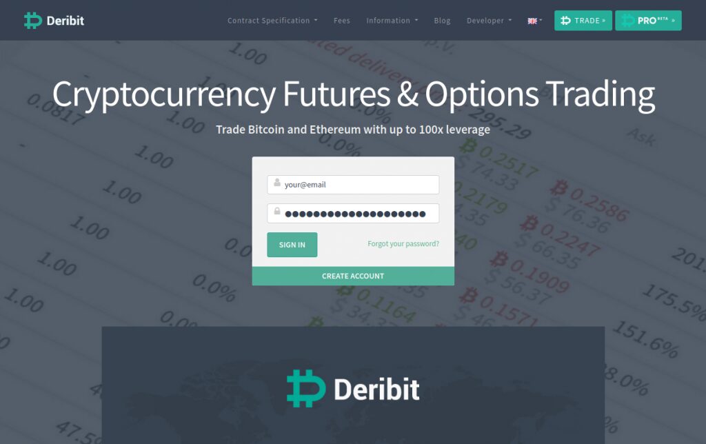 Rendez-vous sur le site officiel de Deribit (www.deribit.com)