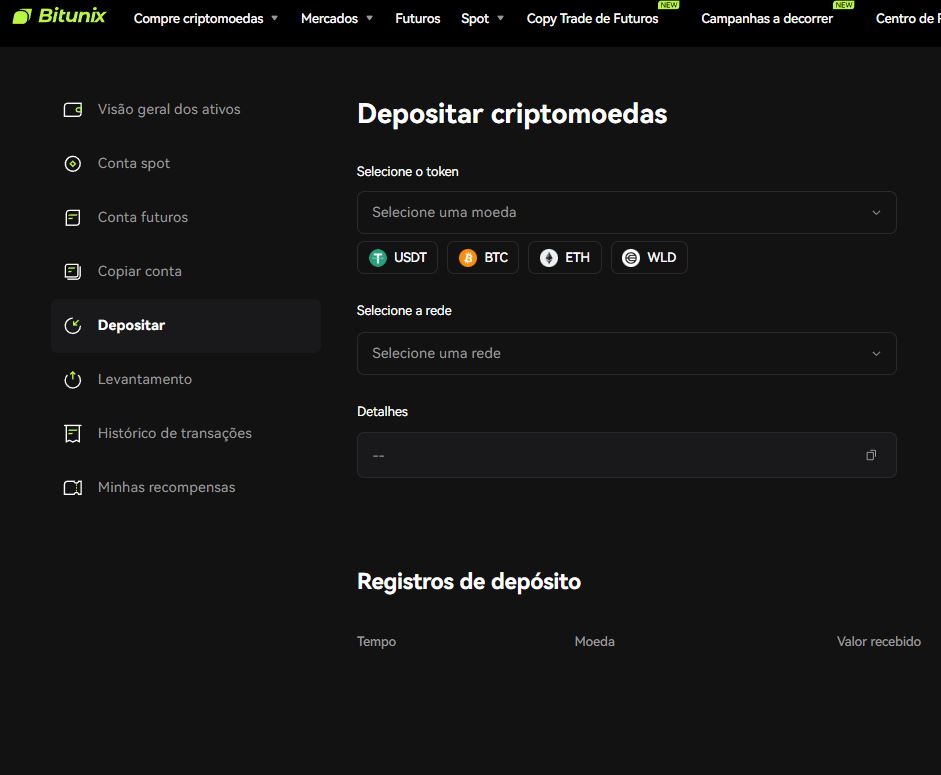 Após criar sua conta e depositar fundos, você poderá utilizar diretamente todas as funcionalidades oferecidas pela Bitunix.