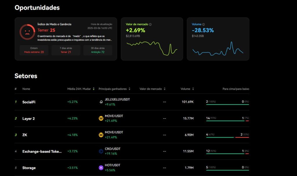Bitunix continua a inovar e a desenvolver funcionalidades úteis. Um excelente exemplo dessa abordagem é o lançamento recente da função “Oportunidades“, que oferece análises precisas e em tempo real do mercado como um todo e dos diferentes setores de criptomoedas.