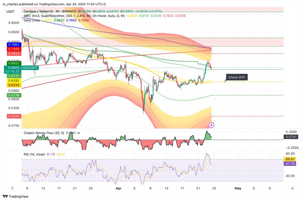 Na quarta-feira, o preço da Cardano atingiu um pico intradiário de 0,715 $, o mais alto desde 28 de março. Este aumento de mais de 40% em relação ao seu ponto baixo recente faz parte de um contexto de recuperação geral nos mercados de ações e criptomoedas. Segundo o CoinMarketCap, o sentimento geral é altista em 89% para o ADA.