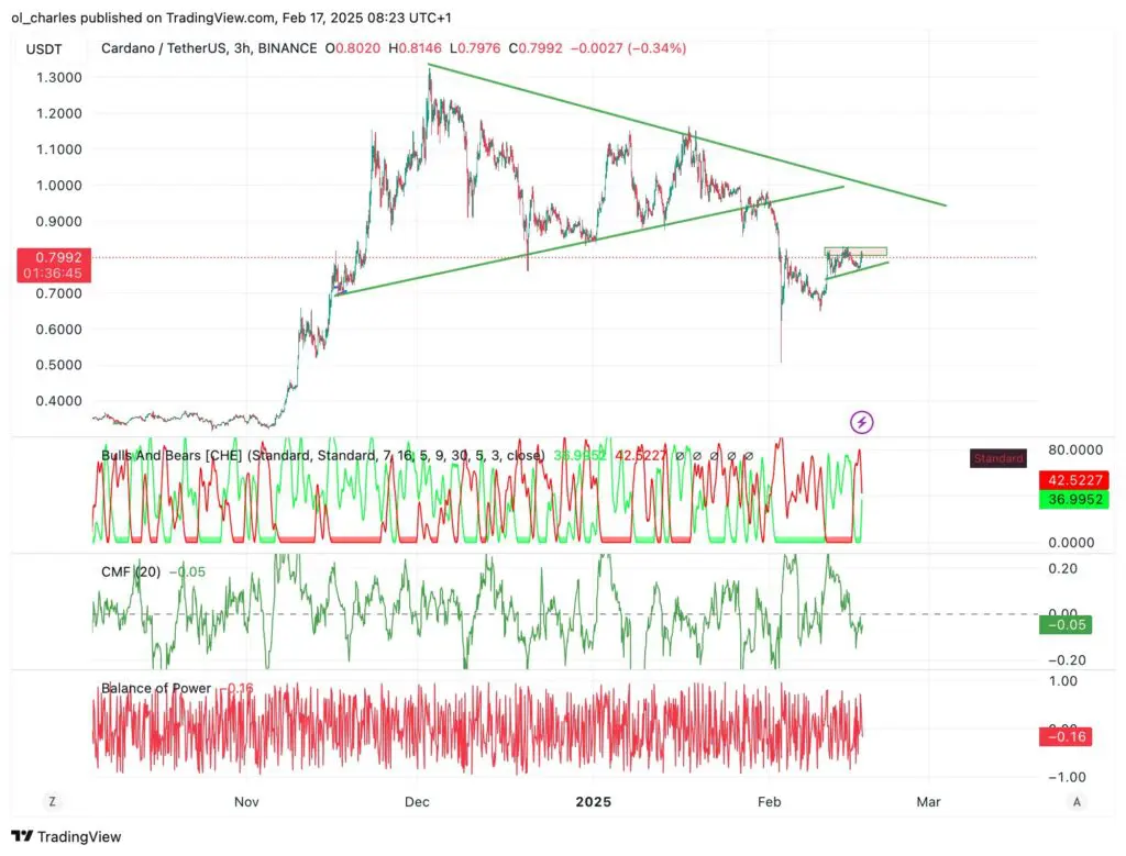 No gráfico de 3 horas, o Cardano enfrentou uma forte resistência em 0,81 $, mas parece pronto para quebrá-la nas próximas horas ou dias. De fato, o “Touros e ursos” indicam que os touros estão retornando com força, sugerindo uma reversão de alta iminente.