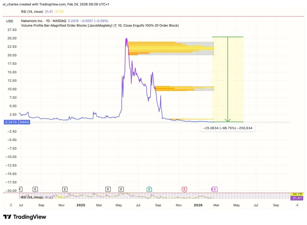 A Nakamoto (NAKA) desvalorizou 99%! Descubra os perigos dos DAT Bitcoin e como este crash afetou os investidores. Análise completa.