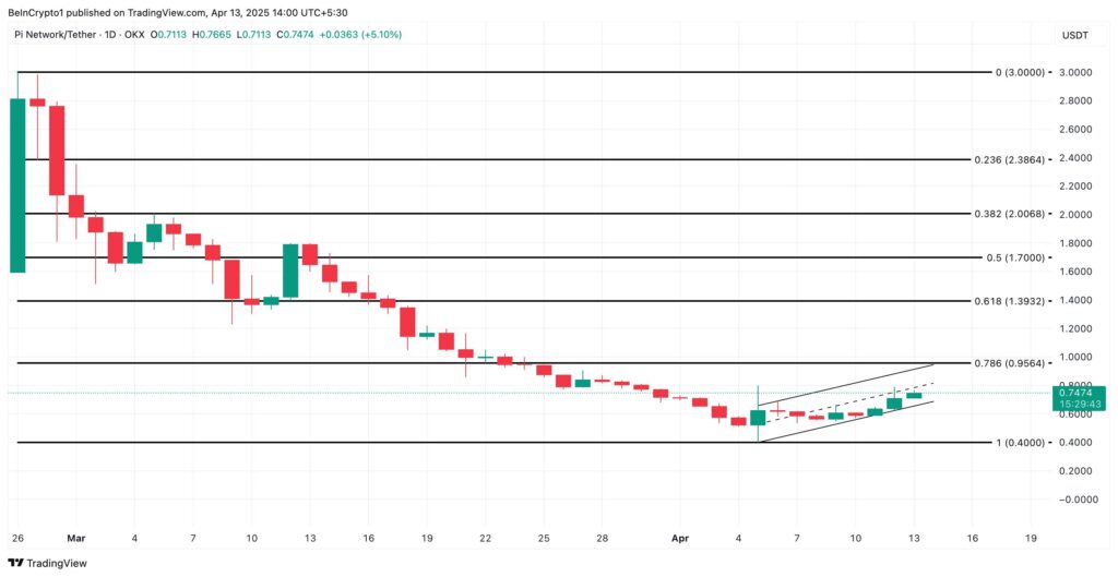 Depois de cair para 0,40$ em 5 de abril, o token PIdemonstrou uma notável resiliência. Ele subiu 84% em apenas uma semana. Em meio a uma recuperação mais ampla do mercado, esse altcoin viu sua demanda aumentar, oferecendo aos touros a oportunidade de retomar o controle.
