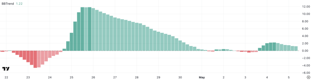 Indicador BBTrend da Ethereum. Fonte: TradingView