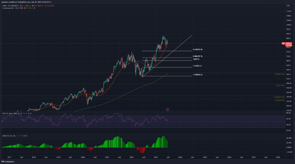 En ce qui concerne l’action LVMH, l’analyse technique montre une très claire tendance haussière sur ces dernières années.