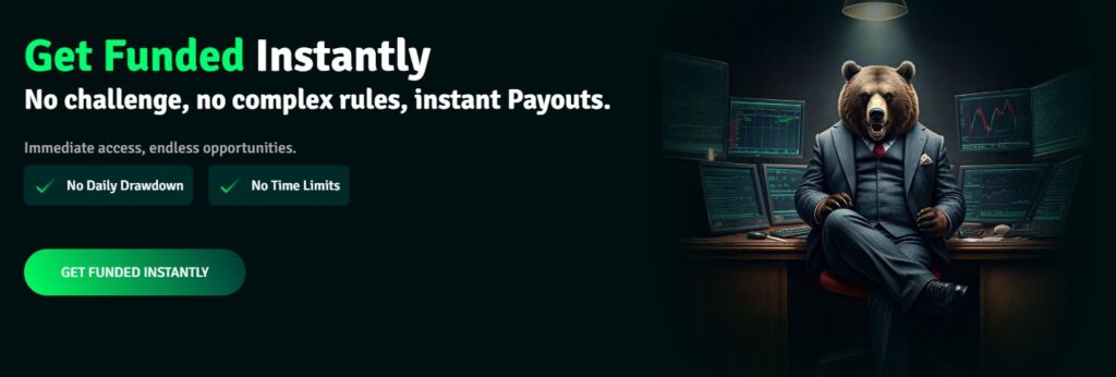 La plateforme opte pour un modèle de financement instantané. Cela signifie qu’après l’inscription et le paiement des frais, le trader reçoit directement l’accès à un compte financé, prêt à être utilisé dès le premier jour.